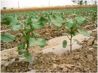 1、拌種、施底肥:覆蓋棉花生長發(fā)育快,結(jié)鈴多,產(chǎn)量高,需肥量大。為使其植體發(fā)育健壯,必須有良好的土壤條件和營養(yǎng)條件,定植前整地要細(xì),施足基肥,澆透水,排灌方便,選好優(yōu)良品種,搞好拌種處理,整地下種后,要用新高脂膜噴施土壤表面,并起壟蓋膜,可保肥保墑,能驅(qū)避地下病蟲,隔離病毒感染,不影響萌發(fā)吸脹功能,加強(qiáng)呼吸強(qiáng)度,提高種子出苗率。